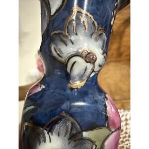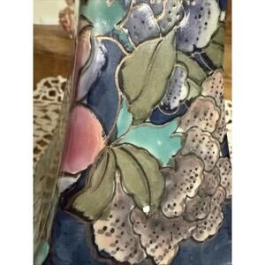 V TG Chinoiserie Floral Hand-painted Candlestick Holder 8.5” Vibrant Colors
