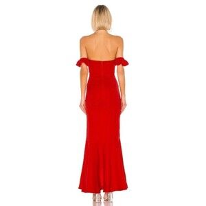 Lovers and Friends Lolita Ruffled Off Shoulder Gown Maxi Dress Fiery Red Small