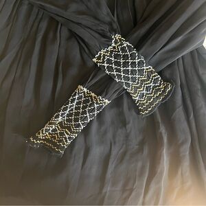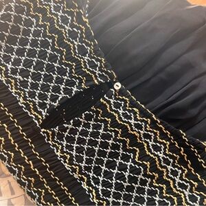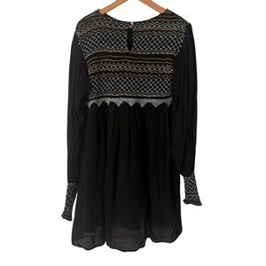 FREE PEOPLE Black Late Night Picnic Embroidered Smock Mini Dress, Small