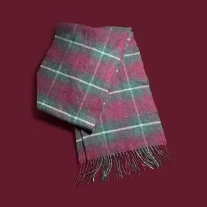 Luxurious and timeless Johnstons of Elgin tartan plaid scarf, crafted in Scotland from 100% pure cashmere. Features a soft brushed finish, classic fringe ends, and a beautiful plum, green, and cream plaid pattern that adds both warmth and elegance.