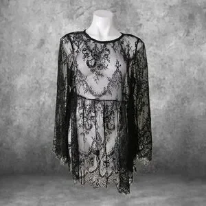 Emery Rose Black Lace Overlay Baby Doll Top XL