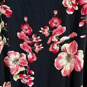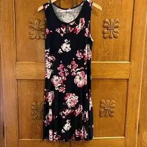 Lascana Sleeveless Keyhole Dress in Floral Navy/Pink Knee-Length (size 10)