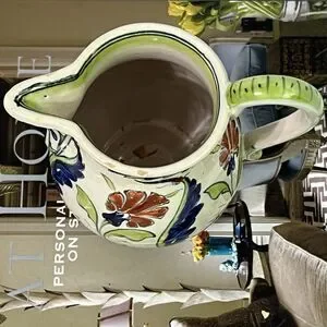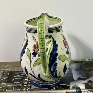 Vintage Floral Italian Ceramic Bud Vase With Handle Multi Flowers Artist Signed