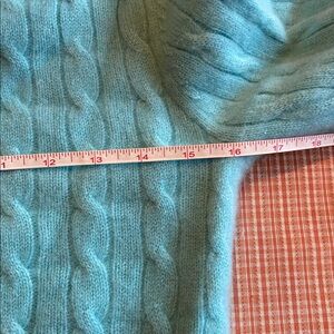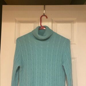 Luxurious light blue cashmere knit. Soft and stylish. Note has a teal coloring
