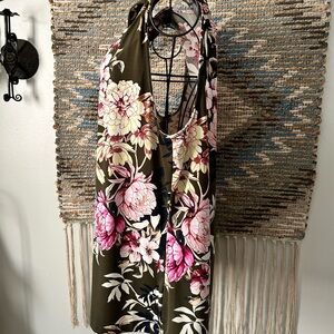 Embrace elegance with this sleeveless floral top. Featuring a stunning green base with vibrant pink floral patterns, this top is perfect for any occasion.