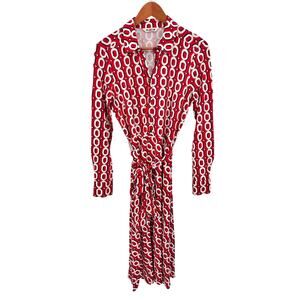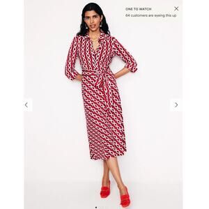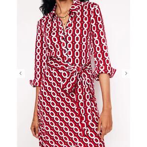 BODEN Laura Jersey Midi Shirt in Red Chain Pattern // 8