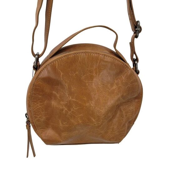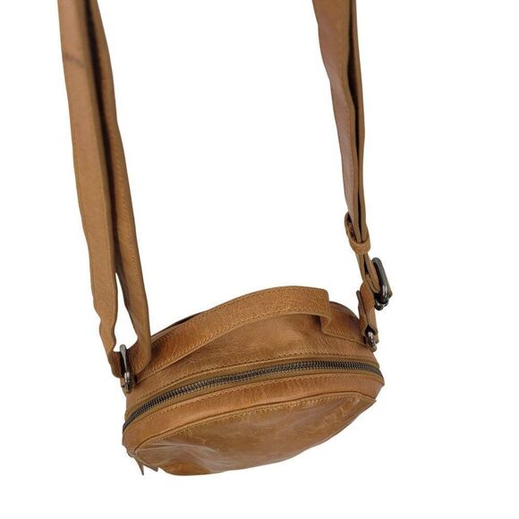 Lucky Brand Round Camel Brown Genuine Leather Top Handle Crossbody Bag Boho Chic