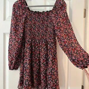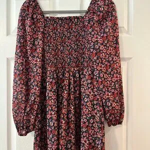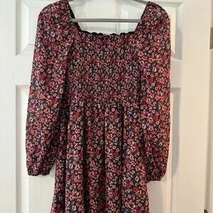 Floral Smocked Long Sleeve Mini Dress – Size M