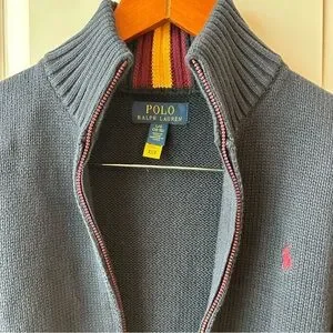 🧥 Polo Ralph Lauren Zip Up Sweater – Navy Blue with Red Logo Boys Large
