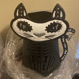Charming Scentsy warmer with a whimsical cat motif. Features vibrant geometric patterns.