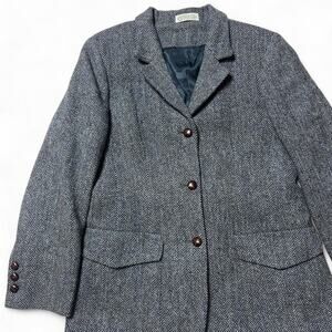 Orvis Harris Tweed Herringbone USA Sewn Three Button Wool Blazer Jacket Womens 10