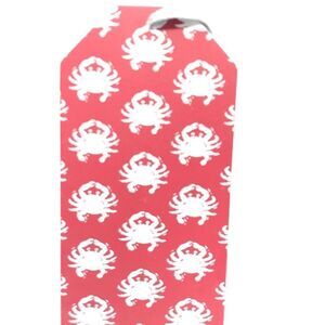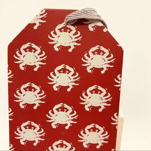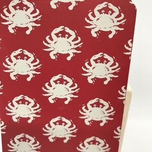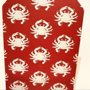 The back has gray crabs set upon a red background.