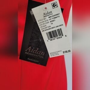 This Aidan Mattox maxi dress features a one-shoulder neckline and a high front slit. It is made with a hint of stretch.