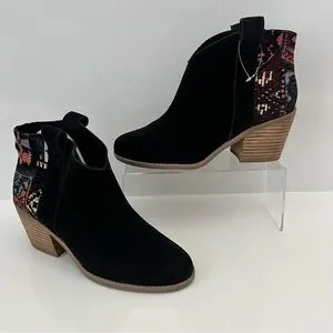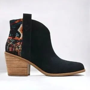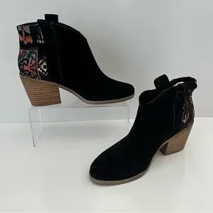 TOMS Constance Western Embroidered Bootie in Black NEW