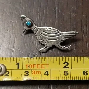 Sterling silver roadrunner brooch featuring a striking turquoise accent. Perfect for adding a touch of charm to any outfit. not stamped but tested sterling!