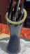 Elegant bangle bracelet featuring white jade beads with green glass crystal beads and gold accents. Perfect for adding a touch of elegance to any outfit. size large. Artisan made by Gina’s Beadiful Accessories Approx 8.5 - 9 inches size based on width of knuckles with thumb tucked under palm of hand. Measure around the knuckles of your hand, with all five fingers brought together to a point