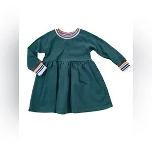 Hanna Andersson Size 90, 3T, Juniper Rainbow Cuff Knit Dress In French Terry