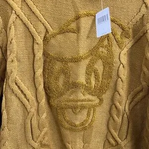 Stylish yellow knit sweater featuring a unique embroidered design of Donald Duck. Perfect for adding a pop of color to your fall or winter wardrobe. Perfect for a Disney fan.