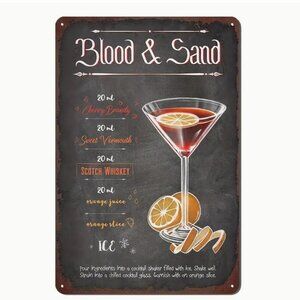 1pc 12"X18" Cocktail Recipes, Vintage Tin Sign - BLOOD & SAND