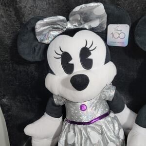 Disney's 100 Years of Wonder NWT Jumbo Minnie Micky Mouse Plush Soft 31" Silver