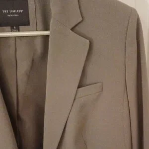 Elegant tan blazer by The Limited. Features classic lapel and button closure. Perfect for versatile styling.