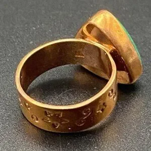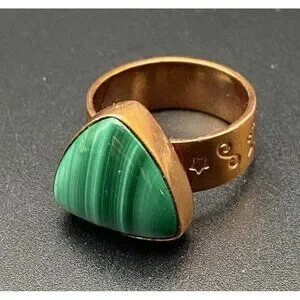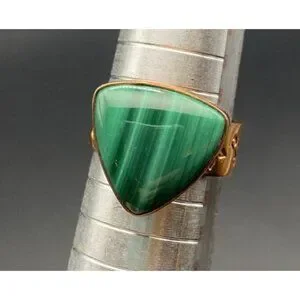 Signed Jay King DTR Copper Ring Size 7.75 Triangular Natural Malachite Cabochon