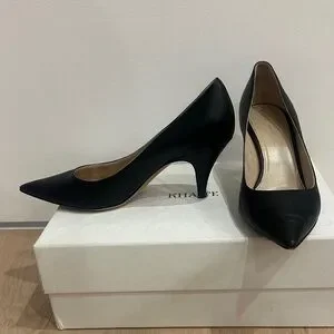 Elegant black leather heels by KHAITE. Sleek and sophisticated design. 3.5” heel. Worn once only. In excellent condition.