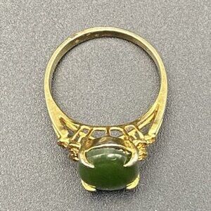 Vintage Gold Tone Ring Jadeite Green Oval Cabochon Openwork Shoulders Size 6