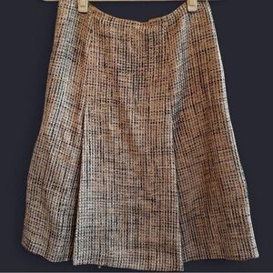 tweed skirt, pleated, wool blend, alpaca fabric, lined, neutral tones, Italian fashion, classic style, sophisticated