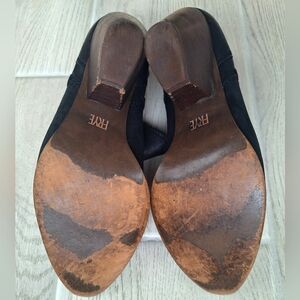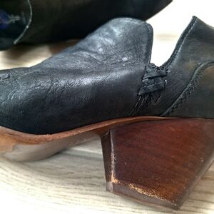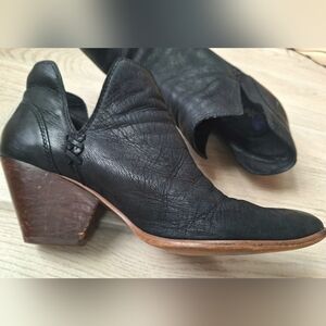 Frye Women's black distressed leather Reina cut out pointy toe ankle booties. Good used condition, there is wear on the heels and bottoms. See photos for reference.