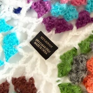 Vibrantly woven, this maxi-length kimono is crocheted with a loose-fitting shape. Layer yours over plain white tees and washed-out denim. Attached hood. Open front. Long sleeves. Pull-on. 100% Acrylic. Excellent condition.