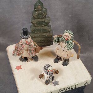 Handcrafted Vintage Toy Wooden Hand Crank Dancing Snowman Family ❄️Snow Dance❄️