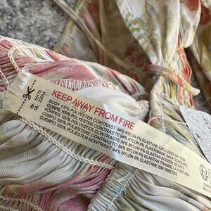 Free People Bodysuit Womens Small Ivory Floral Smocked Long Sleeve Bohemian Stretch