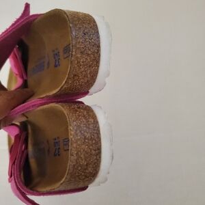 Comfortable and stylish, these Birkenstock sandals in pink are perfect for everyday wear. Featuring a durable design and adjustable straps for a secure fit.