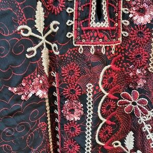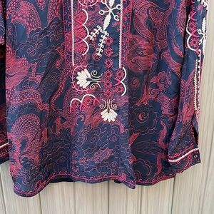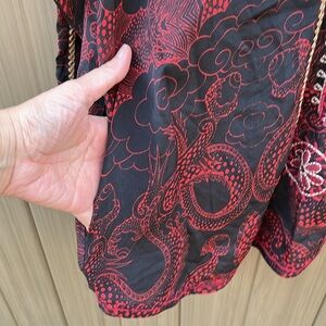 Johnny Was Belina Tunic Large Black Red Silk Embroidered Sequin Blouse Dragon