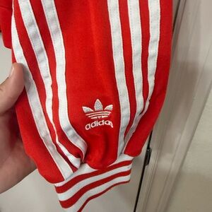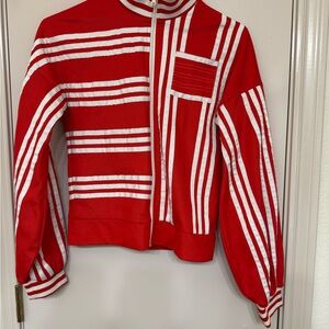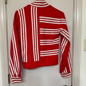 adidas xJji Won Choi Women's Red and White Striped Bomber Jacket