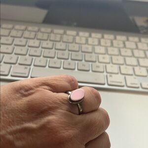 This elegant set features a beautiful pink , oval shaped stone, set in silver.