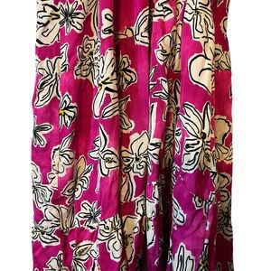 Fun flirty FRNCH sundress in a beautiful hot pink/fuchsia background with black and white flowers and little flecks of yellow in the center of the flowers. Straps ties and are adjustable for a custom fit. Size S NWOT