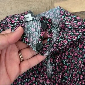 Bershka Long Sleeve Dainty Floral Print Pleated Mini Dress Size Small