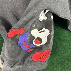Vintage Scared Mickey Mouse Sweater Disney Wraparound Print Gray Size Large