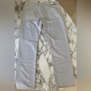 Elevate your denim collection with these NWT Ermanno Scervino grey jeans, crafted in Italy from 100% cotton. Featuring premium construction, a classic straight-leg silhouette, and a statement back tag with leather and metal branding, these jeans blend everyday wearability with luxury detailing.