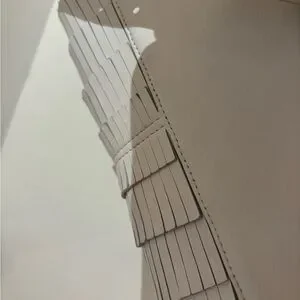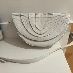 This elegant white leather bag is perfect for any occasion. Its sleek design and high-quality material make it a must-have accessory. Elevate your style with this versatile piece. Purchased on TRR, have worn 3x times, great condition with some small faint marks. Absolutely adore this piece but don’t expect it to carry more than a smaller phone, small card wallet and key. Check out measurements. Prices accordingly