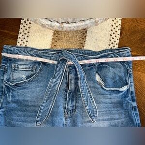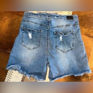 UGC Black Label by C'est Toi Size L Paperbag Distressed Denim Stretch Shorts