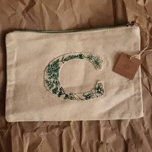 Clarins LETTER C pouch with Green Accents