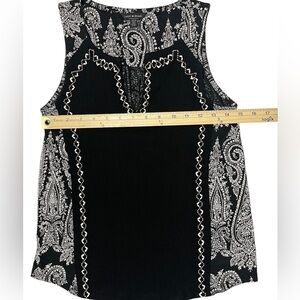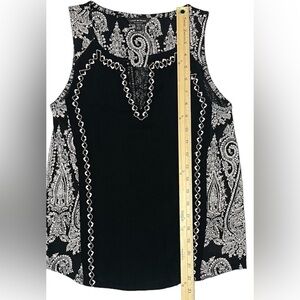 LUCKY BRAND Womens Embroidered Woven Mix Tank Paisley Print Black Size Extra Small