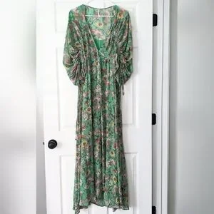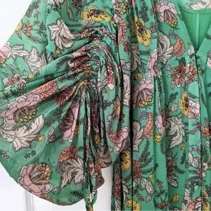 Free People Earthfolk Floral Maxi Dress with Drawstring Long Sleeves