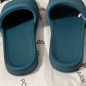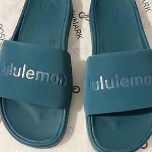 LULULEMON NWT AUTHENTIC WOMEN’S STORM TEAL RESTFEEL GRAPHIC SLIDES