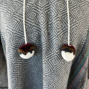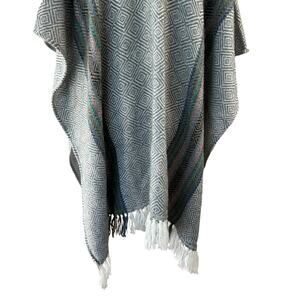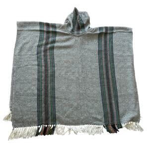 Alpaca Oscatex Knit Hooded Poncho OS Gray White Aztec Boho Cozy Outdoor NWOT