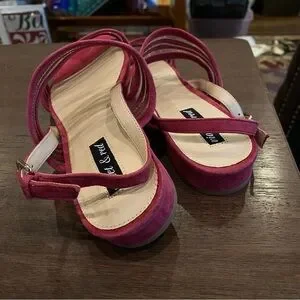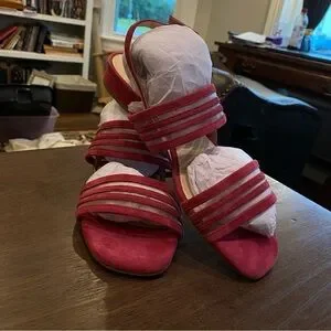 Pink Strappy Suede and Mesh Sandals with Block Heel; New with Tags, Never Worn