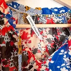 Collective Concepts Multicolor Color Block Floral Sheer Shirt